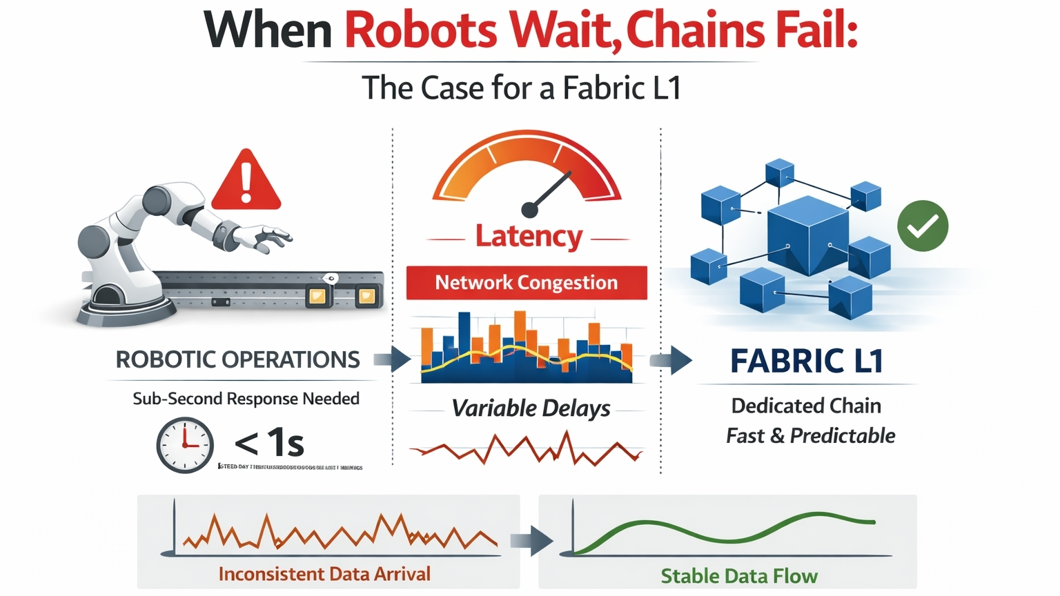 El caso de Fabric Foundation para un L1 nativo proviene de esa simple desajuste. La coordinación robótica en tiempo real pide bucles de acción final de menos de un segundo, actualizaciones de estado ajustadas y ordenación predecible bajo carga. “Finalidad” suena seco, así que déjame ponerlo en términos de taller: es el punto donde una máquina puede moverse porque confía en que el mensaje no será retirado, mezclado o retrasado por una multitud que no puede ver.