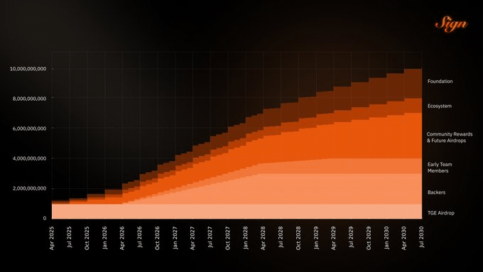 La oferta total está fijada en 10 mil millones de SIGN. Ese límite es importante porque establece una clara frontera en lugar de una inflación interminable. La asignación está fuertemente orientada hacia la comunidad: