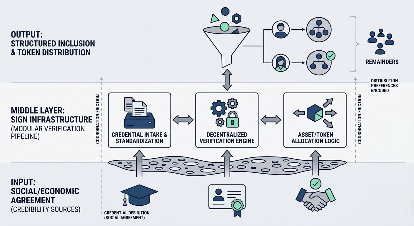 SIGN presents itself as infrastructure That framing matters Infrastructure does not compete at the surface level it shapes what becomes possible for everything built on top of it In this case the promise is straightforward credentials can be verified globally and tokens can be distributed based on those credentials in a way that is transparent scalable and resistant to manipulation It sounds clean Almost inevitable But when I slow down and trace the edges of the system I start to see a deeper coordination problem forming underneath the surface