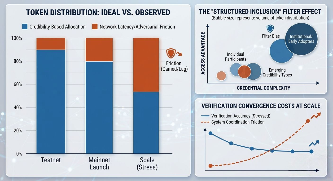 Stress could also come from adversarial behavior Any system that allocates value based on credentials will attract attempts to game those credentials The question is not whether this will happen but how the system responds when it does Does it tighten verification potentially excluding legitimate participants Does it loosen standards risking dilution of value Or does it introduce additional layers of complexity to distinguish between genuine and manipulated signals