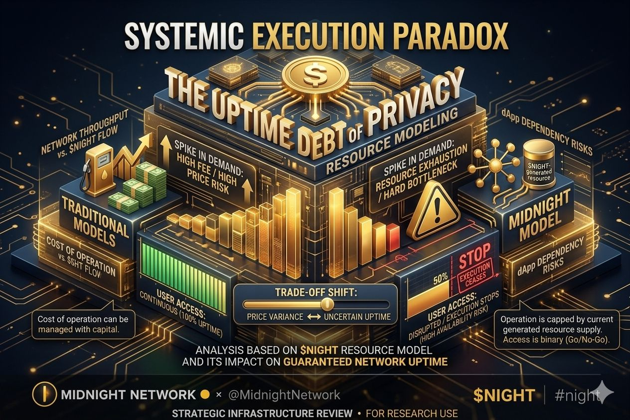 En el actual @MidnightNetwork modelo, $NIGHT se utiliza para generar los recursos necesarios para la ejecución privada. En la superficie, esto parece ser una estrategia sofisticada de gestión de recursos. Sin embargo, una mirada más profunda revela un potencial embotellamiento de privacidad que podría paralizar la red durante la demanda máxima.