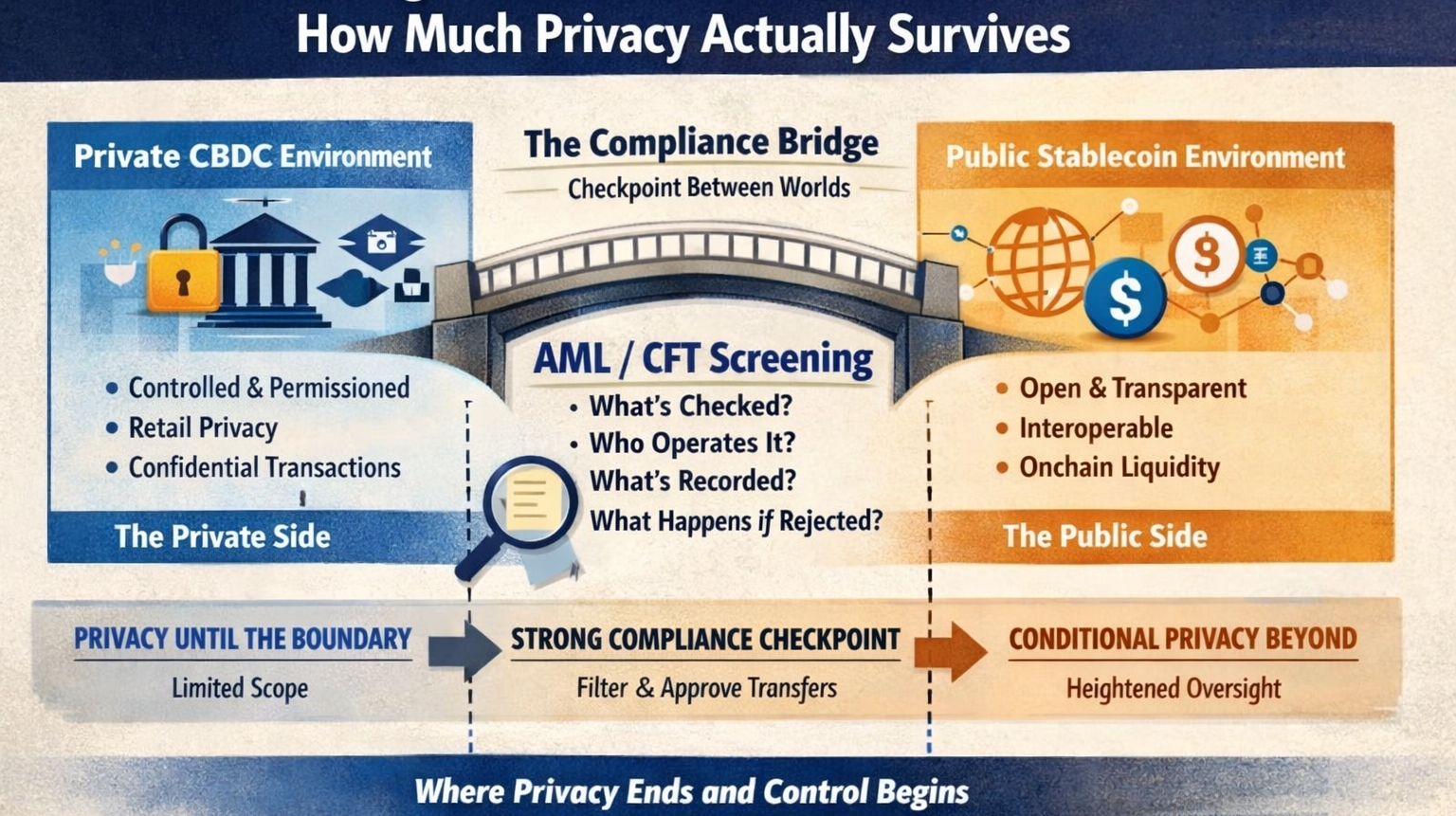 If a sovereign system wants to connect a private domestic monetary environment with a more open public blockchain environment, some kind of compliance boundary is not surprising. In a lot of ways, it is expected.