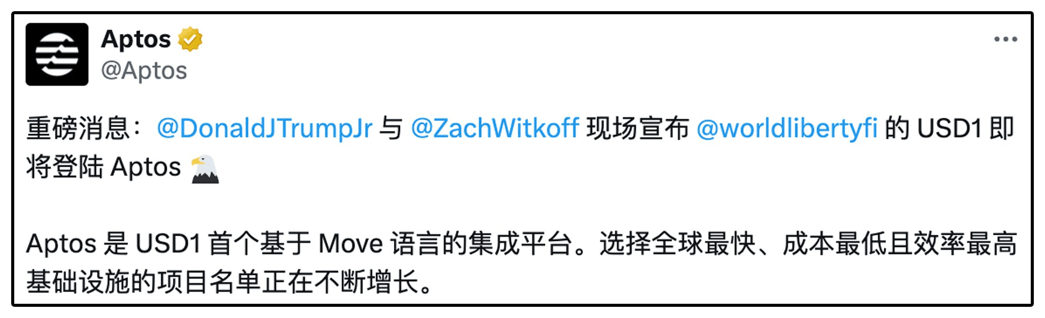 1. Actualización estratégica: USD1 primera expansión cruzada a Aptos, apuntando a aplicaciones a gran escala
