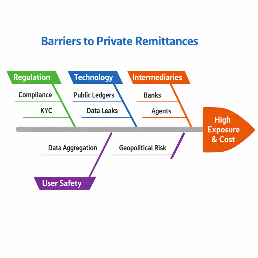 The global remittance market runs on a painful irony. The people who most need affordable, private money transfers are exactly the people most exposed on traditional systems. A construction worker in Qatar sending money home has their transaction amount, timing, and frequency permanently recorded by every intermediary in the chain. That data gets aggregated, analyzed, and occasionally used in ways the sender never consented to. In some geopolitical contexts, that exposure is dangerous. In most, it's simply unfair.