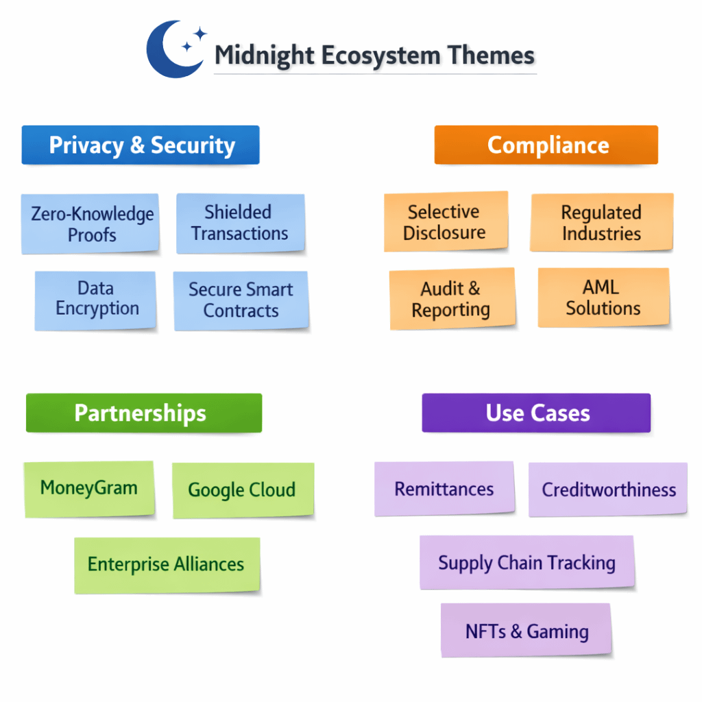 One project in the Midnight ecosystem aims to let users demonstrate creditworthiness and repayment history while keeping specific loan amounts and merchant interactions private, anchoring identity in verifiable economic behavior rather than exposed transaction records. That's the shape of what a privacy-preserving financial product could look like on this network. It's still early. It's still conceptual in places. But the direction is correct.