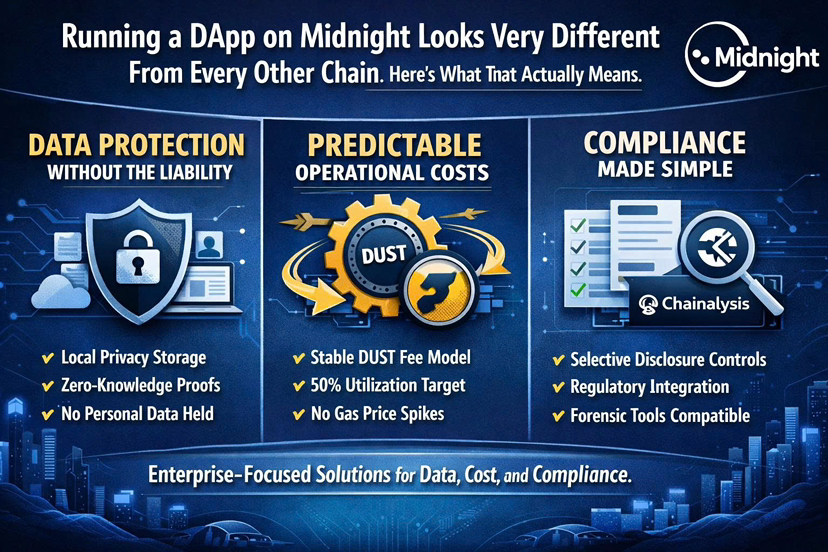 Lo que encuentro genuinamente atractivo sobre la posición del operador de Midnight es que se construye en torno a la reducción de los tres costos específicos que han impedido la adopción de blockchain a nivel empresarial: costos de responsabilidad de datos, imprevisibilidad de costos operativos y fricción en el cumplimiento regulatorio. Cada una de las características del operador se mapea directamente a una de esas tres barreras.