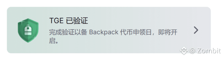 用戶領取需登入Backpack 官網或行動應用程式完成TGE 驗證程序,系統將根據快照時積分相對佔比自動計算並發放份額Mad Lads NFT 持有者僅需連接對應錢包即可自動獲配,無需額外操作。用戶完成後,可在積分-成就中看到「TGE 已驗證」徽章。