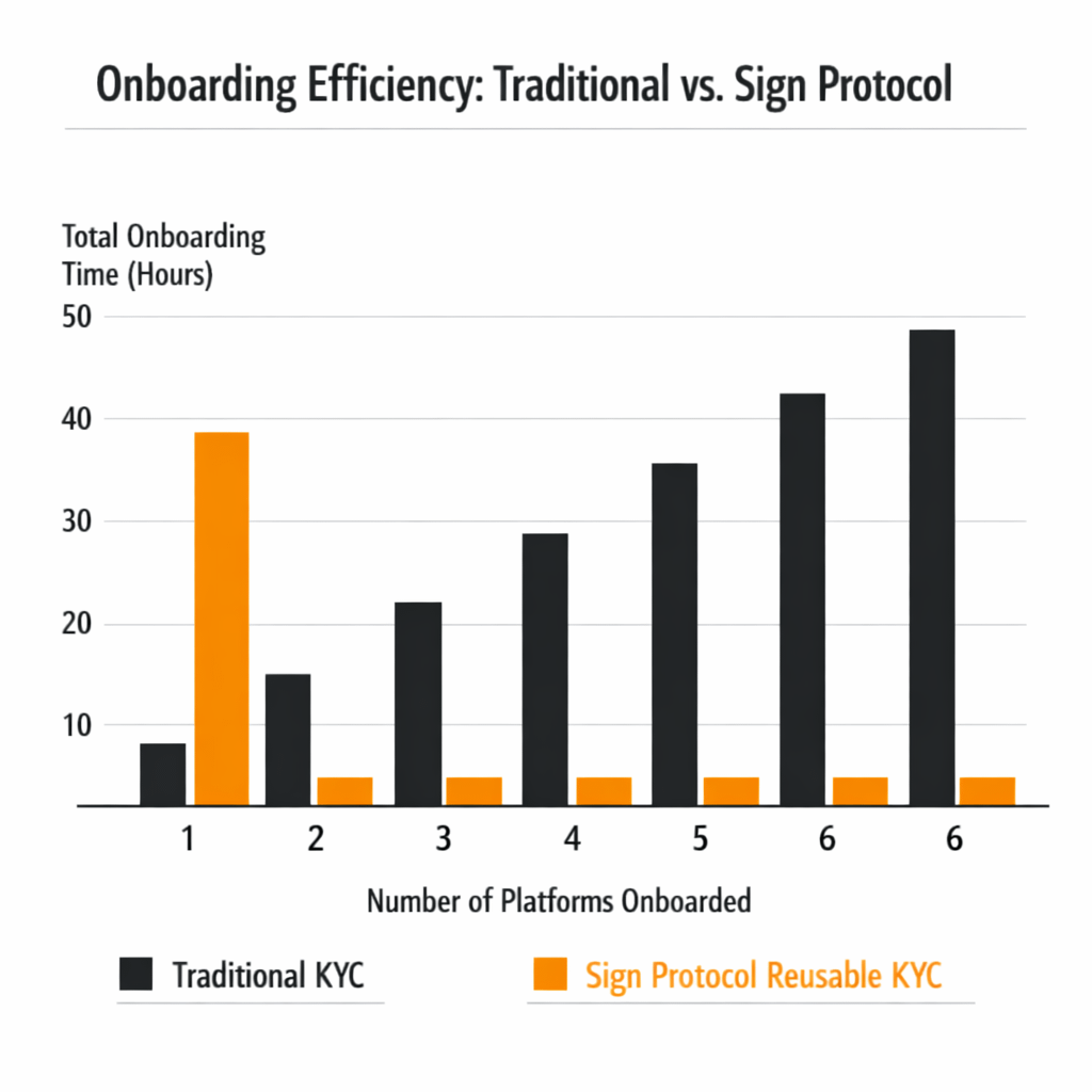 I have been thinking about KYC more than I expected. Not because it is exciting, but because it is everywhere. Every exchange. Every fintech app. Every onboarding flow. The process is always similar: upload documents, wait for verification, repeat the same steps on the next platform. It feels inefficient and oddly outdated for a digital system that claims to be decentralized. That frustration is what made me look more closely at how Sign Protocol approaches identity verification. At first, the idea sounds simple. Instead of repeating KYC across multiple platforms, a user could complete verification once and carry that proof with them. Different services could check the proof rather than request the same documents again.