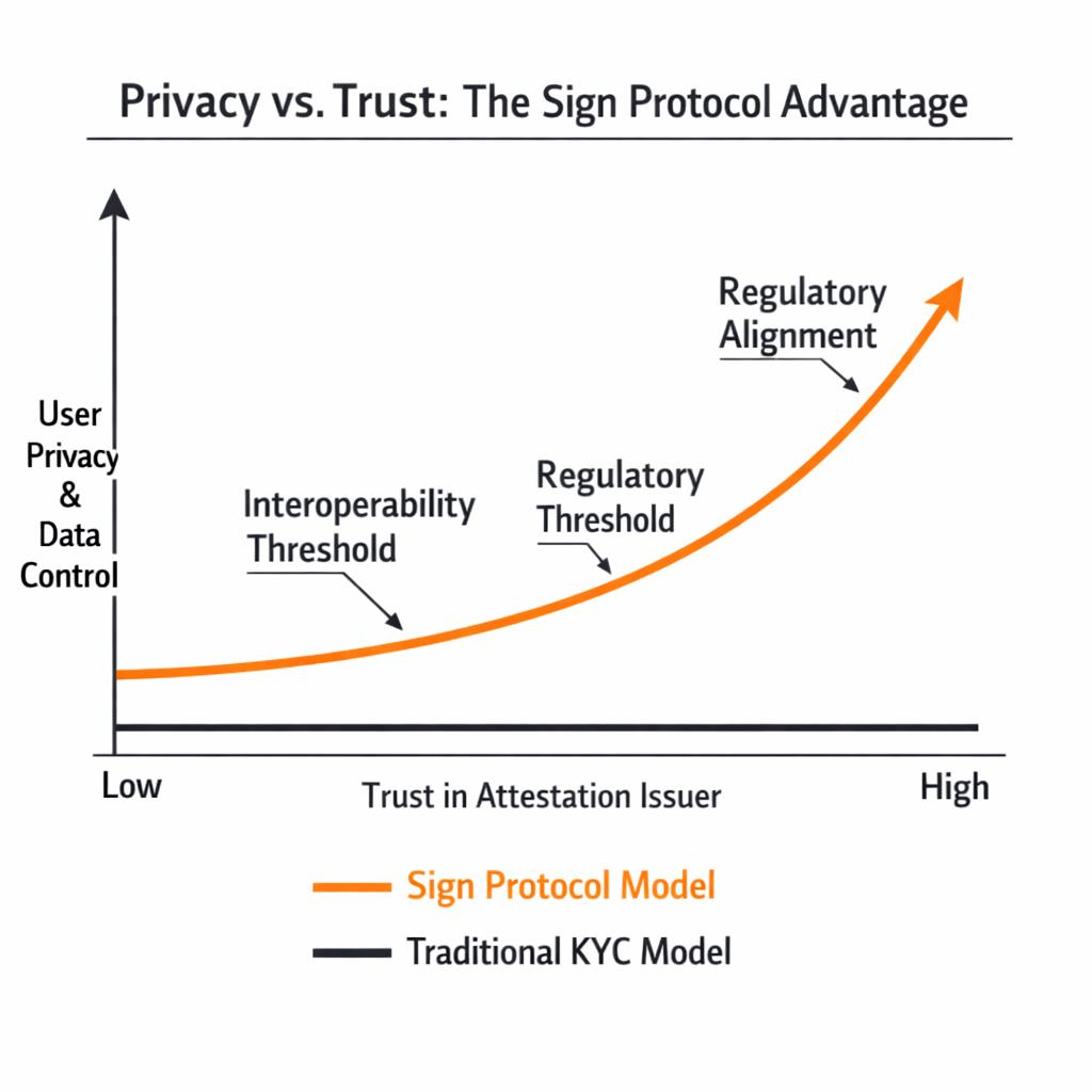 In theory, this would reduce friction and improve user experience. But the moment I think about it more carefully, the complexity becomes clear. KYC is not just a technical process; it is tied to regulation compliance and institutional responsibility. Platforms are required to verify users under specific rules. They cannot simply accept any external proof without trusting the issuer and ensuring it meets regulatory standards. This is where Sign Protocol starts to position itself differently. It focuses on attestations structured claims that can be issued by trusted entities. A verified KYC provider could issue an attestation confirming that a user has passed the required checks. Other platforms could then verify that attestation without accessing the underlying personal data. From my perspective, this introduces an interesting shift. The system separates verification from data exposure. Instead of sharing documents repeatedly, a user shares proof that verification has already happened. Sensitive information remains with the issuer while the network confirms that the requirements were met. In theory, this could make KYC both more efficient and more private.