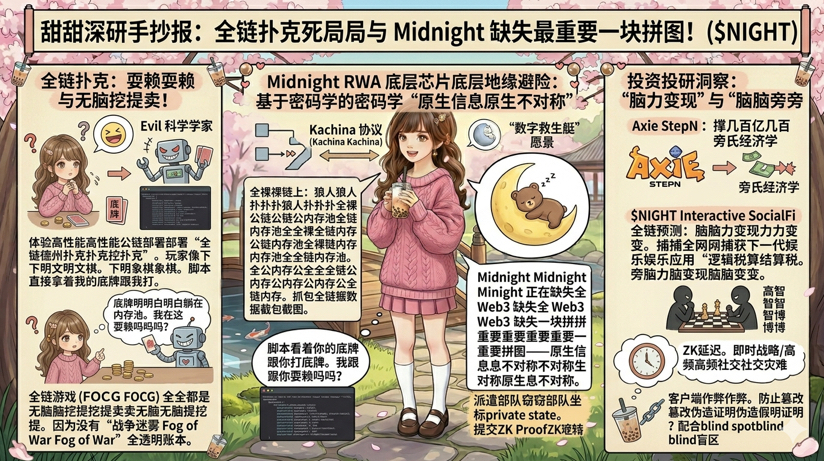 Si no fuera por un soporte de base como Midnight, cualquier intento de hacer “Mafia” o “Póker” en la cadena, se convertiría en un cajero automático para hackers y científicos de scripts. Cuando Midnight se convierte en la única infraestructura de base que puede soportar “juegos de información asimétrica”, $NIGHT lo capturado ya no será simplemente tarifas de transacción, sino el “impuesto de liquidación lógica” de la próxima generación de aplicaciones de entretenimiento fenomenales en Web3.