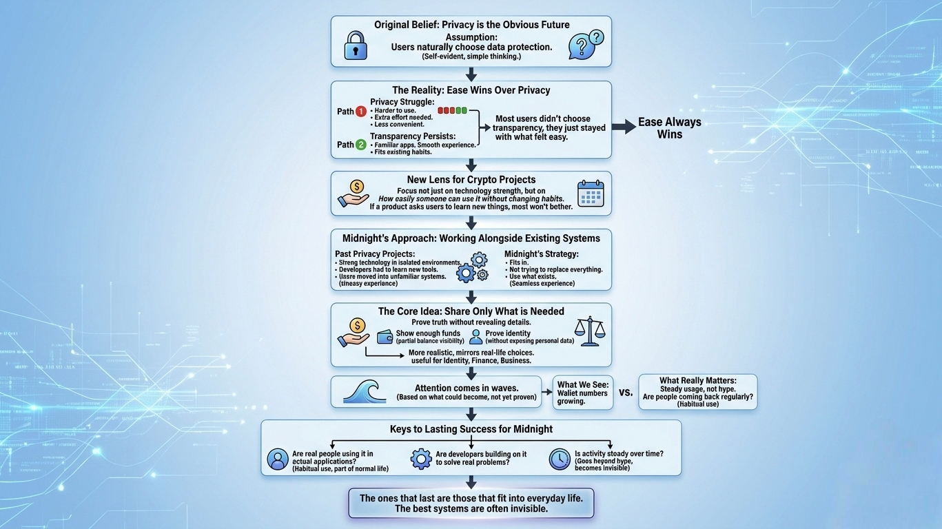 La mayoría de los usuarios no se sentaron allí y eligieron la transparencia sobre la privacidad. Simplemente continuaron usando lo que les parecía fácil. Las aplicaciones que ya conocían, los sistemas que no requerían esfuerzo adicional, la experiencia que se sentía fluida. Eso es con lo que la gente se quedó.