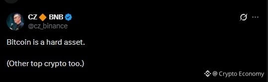 El fundador de Binance publicó un mensaje breve pero contundente en X: “Bitcoin es un activo duro. (Las otras principales criptomonedas también).” Con esa declaración, CZ buscó recordar a la comunidad que BTC no fue diseñado para el comercio a corto plazo, sino como una cobertura contra la inflación en contextos económicos adversos.