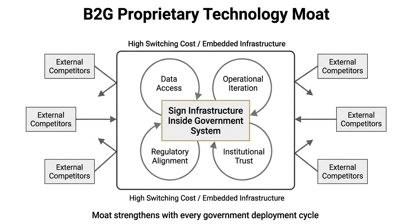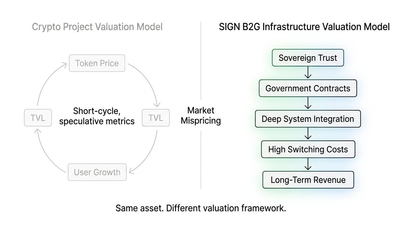 The B2G model works differently from everything else in crypto. In B2B or B2C markets, the primary challenge is product-market fit — building something people want and distributing it efficiently. In B2G, the primary challenge is trust. Governments do not take risks on unknown vendors. They do not integrate new infrastructure because the whitepaper is technically elegant. They integrate after years of relationship building, legal review, security auditing, and procurement processes that filter out every company that cannot demonstrate sovereign-grade reliability. That barrier is extraordinarily high. Sign has already crossed it. The Kyrgyz Republic's National Bank signed a technical service agreement — not an MOU, not a letter of intent, but a technical service agreement — for Sign to build the Digital SOM CBDC. That crossing of the government trust barrier is not a milestone. It is a moat. Because once Sign is inside a sovereign system, the switching costs are so high, the integration so deep, and the institutional relationships so embedded that the contract effectively becomes permanent infrastructure.