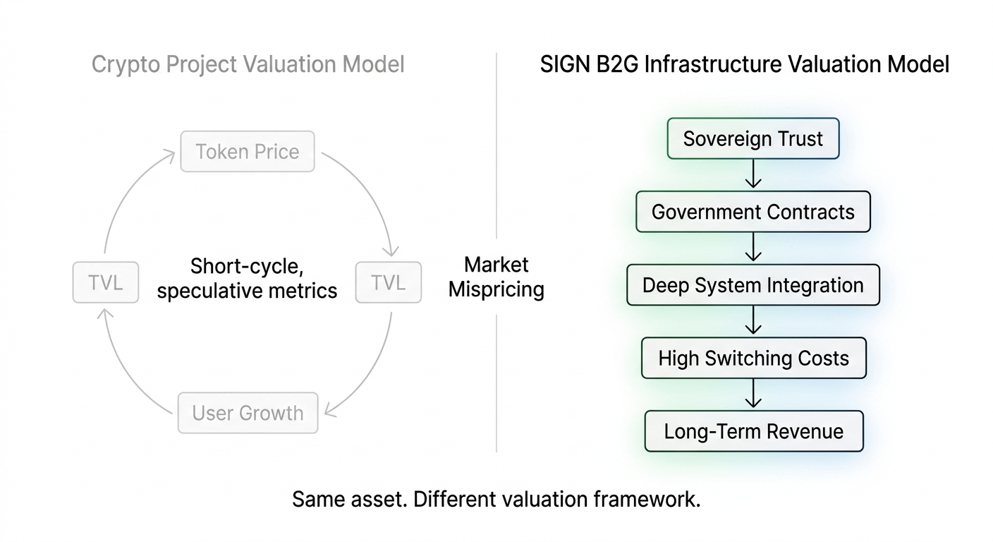 I have noticed something about the way most people position Sign Network in their mental model of the crypto landscape. They place it next to other attestation protocols, other identity layers, other token distribution platforms — and they compare market caps, token unlocks, and TVL figures as if Sign is competing in that category. It is not. Sign's own documentation makes this explicit, and the framing it uses is not subtle. Sign describes itself as a B2G proprietary technology company. Not a protocol. Not a DeFi primitive. A business-to-government technology company — the same structural category as Palantir, Anduril, and SpaceX. That comparison is not aspirational. It is architectural. And the gap between how crypto prices B2G proprietary technology companies and how public markets price them is one of the most significant mispricings in the current cycle.