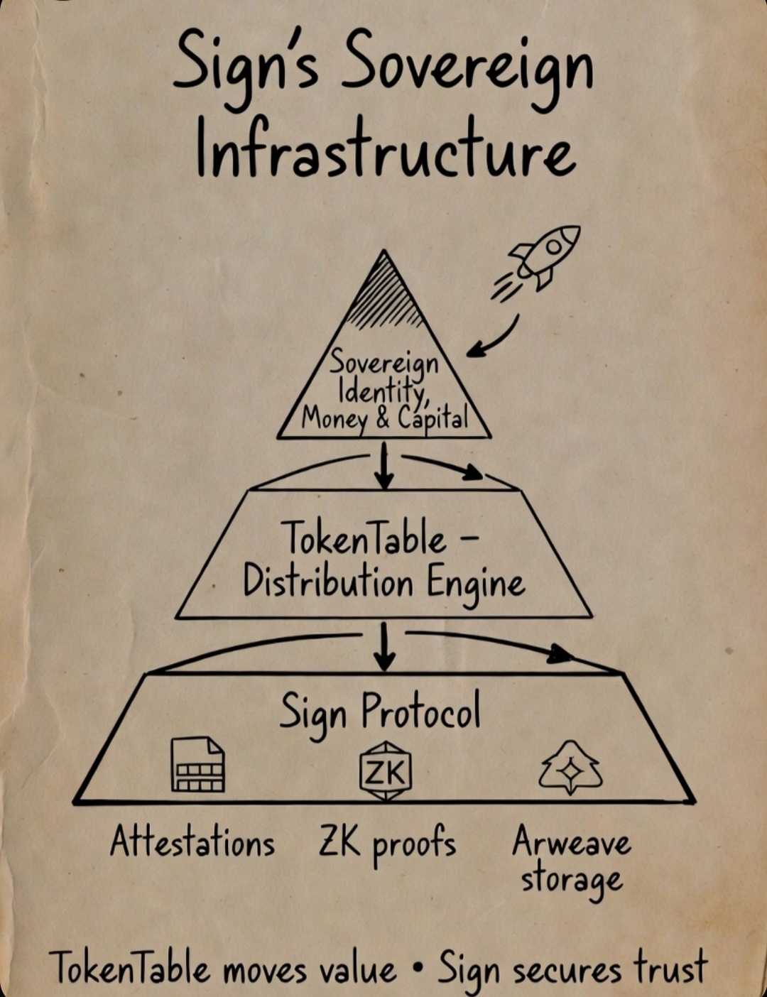 Ahora aquí está la parte interesante: TokenTable no es solo una herramienta independiente. Es parte de la visión más grande de Sign, infraestructura soberana para la identidad, el dinero y el capital. Mientras TokenTable maneja la distribución, Sign también proporciona credenciales verificables para gobiernos, pruebas ZK para privacidad y almacenamiento permanente en Arweave. TokenTable es el motor que mueve valor, y Sign es la capa de confianza que asegura que todo sea seguro y verificable.