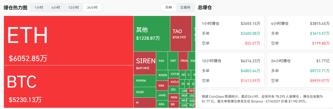 最近24小时,全球共有 77,944 人被爆仓 ,爆仓总金额为 $1.73 亿。BTC继续展现出超级韧性,围绕70000-71800做激烈的震荡,降低盈利预期,BTC/ETH博弈没一点问题,现货适当的布局一点山寨,耐心地等待风吹来即可!