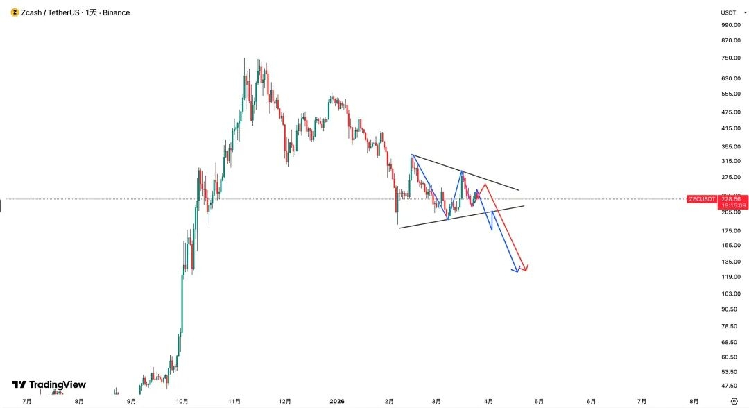 因此我认为近期ZEC我们会有一个不错的做空机会,这个跌幅相当可观,盈亏比不错。