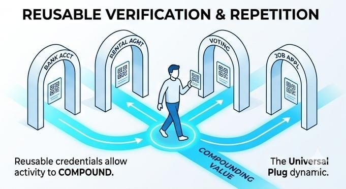 Because once outputs become reusable, activity starts compounding. One credential can unlock multiple interactions. One proof can support many agreements.