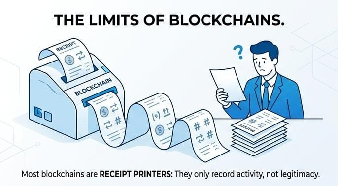 Most blockchains function like receipt printers. They record that something happened assets moved, value changed hands. But a receipt doesn’t tell you if the transaction was legitimate, if the participants were authorized, or if the outcome should be recognized outside the system.