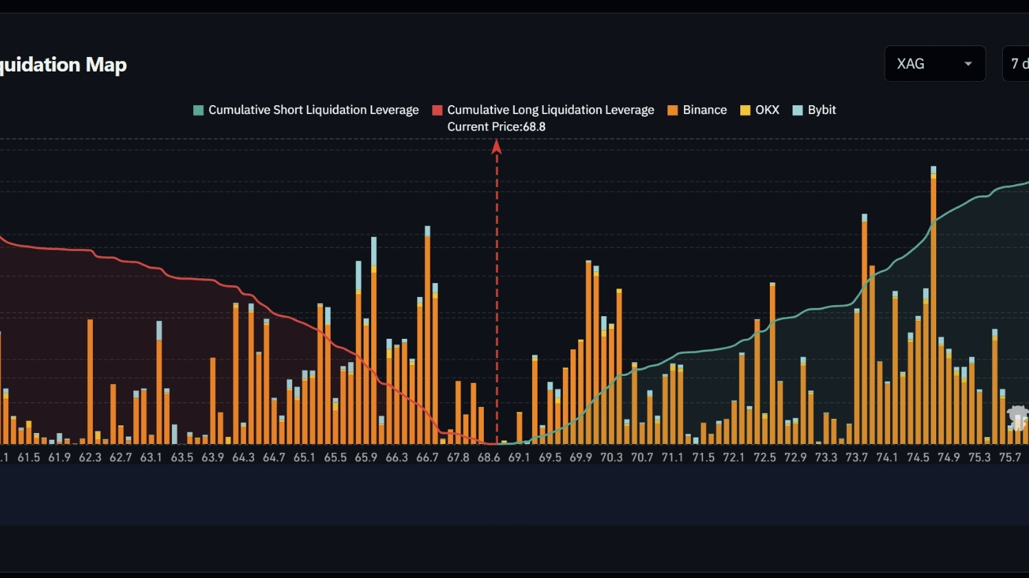 📊 $XAG – خريطة التصفية (7 أيام) – المؤشر ~68.8
