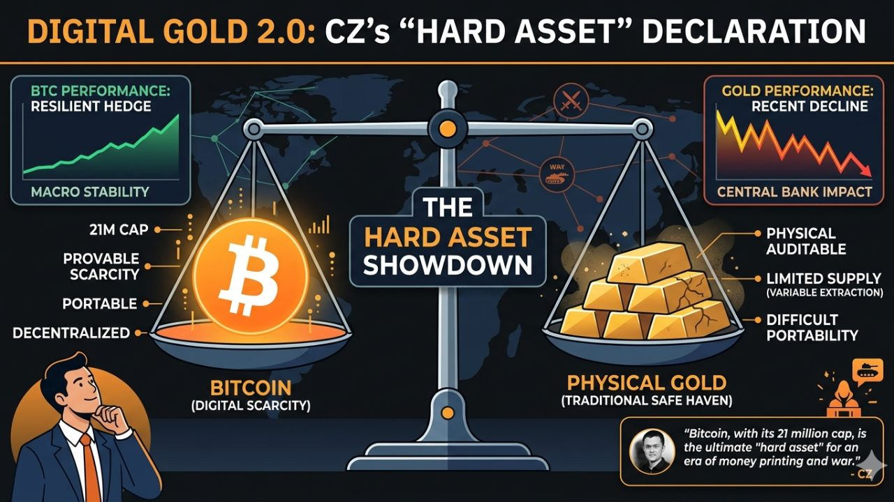 CZ ha simplificado un concepto complejo en una etiqueta definitiva: activo duro. Al hacerlo, ha galvanizado a una comunidad y proporcionado un argumento claro para aquellos que cuestionan el papel de Bitcoin. Ya no es solo "oro digital" (una analogía); es la implementación 2.0 del mismo concepto de dinero. A medida que el ciclo de "imprimir guerra" e inflación continúa inevitablemente, es probable que el mercado continúe validando la tesis de CZ, y la brecha de rendimiento entre la escasez matemática, digital y el oro físico, centralizado, puede seguir ampliándose.