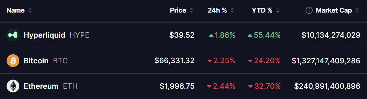 ¿Por qué HYPE ha subido un 55% en lo que va del año mientras que Bitcoin y Ethereum han bajado significativamente?