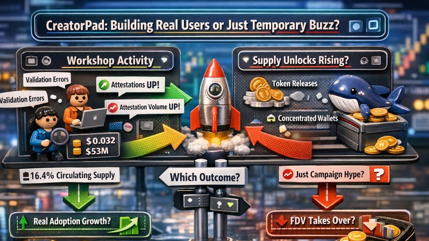Para mí, la historia a largo plazo de Sign se reduce a una pregunta simple que puedes rastrear: ¿la participación práctica de CreatorPad impulsará las billeteras activas en la cadena y el volumen de atestaciones más alto, más rápido de lo que los desbloqueos aumentan la oferta en circulación? Si lo hace, la presión de precio de hoy podría ser solo una pausa mientras el uso real se pone al día. Si no, el zumbido podría desvanecerse y la gran FDV tomará el control. La sensación de taller en esos hilos me hace pensar que el primer escenario es posible, pero solo lo sabremos una vez que veamos los números en la cadena durante los próximos meses.