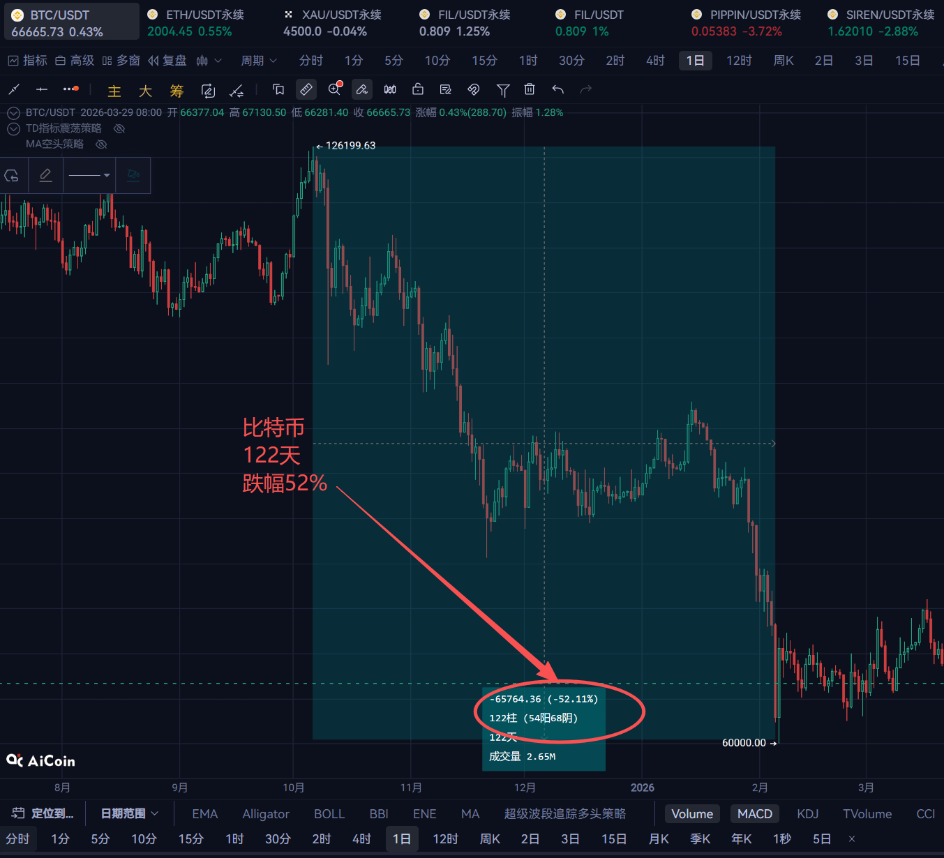 En los últimos cinco meses, el precio de Bitcoin ha caído un 52% desde su punto más alto hasta su punto más bajo en 122 días, y actualmente el precio de negociación está por debajo de 70000 dólares. Esta caída se atribuye a la incertidumbre económica macro, el sentimiento de aversión al riesgo y la disminución de la entrada de fondos institucionales. Después de alcanzar un pico cercano a 126,000 dólares a finales de 2025, el entusiasmo del mercado disminuyó, lo que llevó a la caída de precios. El comercio con apalancamiento intensificó esta caída, provocando liquidaciones forzadas y acelerando las ventas.