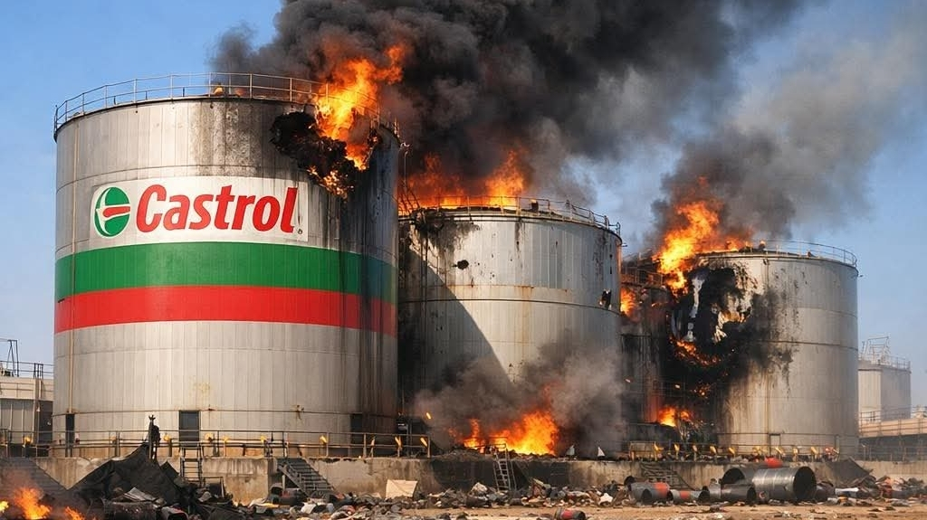 Un gran incendio estalló en los almacenes de aceites "Castrol" británicos