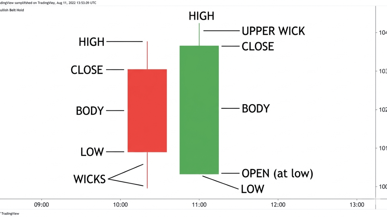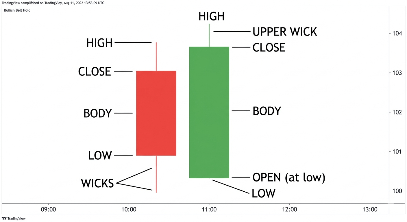 Imagine a market that has been sliding down for days. Pessimism is high. Then, suddenly, a new candle opens. Instead of drifting lower, it opens at its absolute lowest point and immediately explodes upward, closing near its high. This "shoves" the bears out of the way, creating a "belt" or a floor that price refuses to go below.