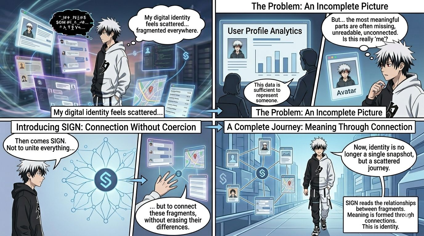 Lo que es interesante es que este enfoque no intenta simplificar la identidad. Si acaso, acepta que una persona puede tener múltiples lados, a veces incluso contradictorios. Pero en lugar de ver eso como inconsistencia, SIGN lee las relaciones entre ellos, cómo un fragmento complementa a otro.