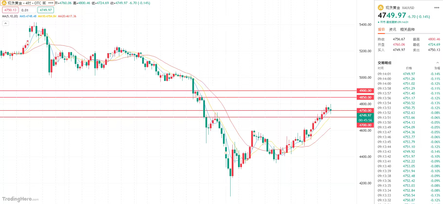Desde el punto de vista técnico, la oscilación general es bastante fuerte, pero hay señales claras de resistencia en la parte superior. En el gráfico diario, el precio del oro se apoya en la media móvil a corto plazo y sube oscilando, estabilizándose después de múltiples pruebas del soporte clave de 4680 dólares, mostrando una tendencia de aumento escalonada, pero enfrenta una fuerte resistencia cerca de 4800 dólares. El indicador MACD mantiene columnas rojas, aunque la fuerza de los toros no se ha agotado completamente, la amplitud de las columnas rojas se está reduciendo gradualmente; el indicador RSI se acerca a la zona de sobrecompra, y la fuerza de ataque es insuficiente. En el gráfico de 4 horas, la banda de Bollinger se abre hacia arriba, el precio del oro sube oscilando a lo largo de la línea media, pero la parte superior cerca de 4800 dólares muestra una fuerte presión, múltiples intentos de alcanzar máximos han encontrado resistencia y retrocedido, no logrando formar una ruptura efectiva, el rango de oscilación se está reduciendo gradualmente, y la lucha entre compradores y vendedores se intensifica. En el gráfico de 1 hora, la tendencia del oro es débil, formando una diferenciación a corto plazo con el patrón oscilante general que es fuerte. El precio del oro cae por debajo del soporte de la media móvil a corto plazo, mostrando una ligera tendencia a la baja, el indicador MACD continúa reduciendo la columna roja, acercándose gradualmente al eje cero, liberando gradualmente la fuerza bajista. El indicador RSI ha retrocedido a una zona neutral y débil, con insuficiente fuerza de ataque, la tendencia de la banda de Bollinger se mueve hacia abajo, el precio del oro opera por debajo de la línea media, mostrando presión de corrección a corto plazo, y se debe tener cuidado con una posible caída adicional hacia el soporte. En general, hoy, en las operaciones a corto plazo de oro, el viejo Yu sugiere centrarse en comprar en caídas para posiciones largas y en la venta en rebotes para posiciones cortas, prestando atención a la resistencia temporal en el rango de 4850-4900 y al soporte temporal en el rango de 4750-700.