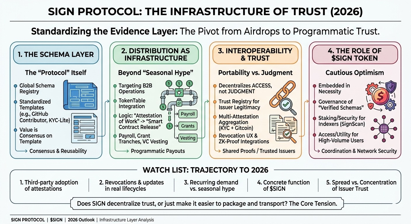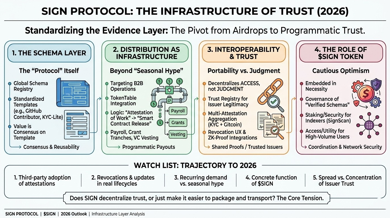 $SIGN es donde todavía soy un poco cauteloso. Puedo imaginar el papel previsto: gobernanza, alineación de incentivos, tal vez coordinación en torno a emisores, esquemas o participación en la red. Todo eso es plausible. Pero los tokens adjuntos a proyectos de infraestructura tienden a adelantarse a la red de confianza real. Si SIGN se convierte en el lugar predeterminado donde se coordinan las atestaciones y distribuciones, entonces, claro, un token puede tener un papel duradero. Si no, podría permanecer mayormente adyacente al producto en lugar de estar embebido en la necesidad del protocolo.
