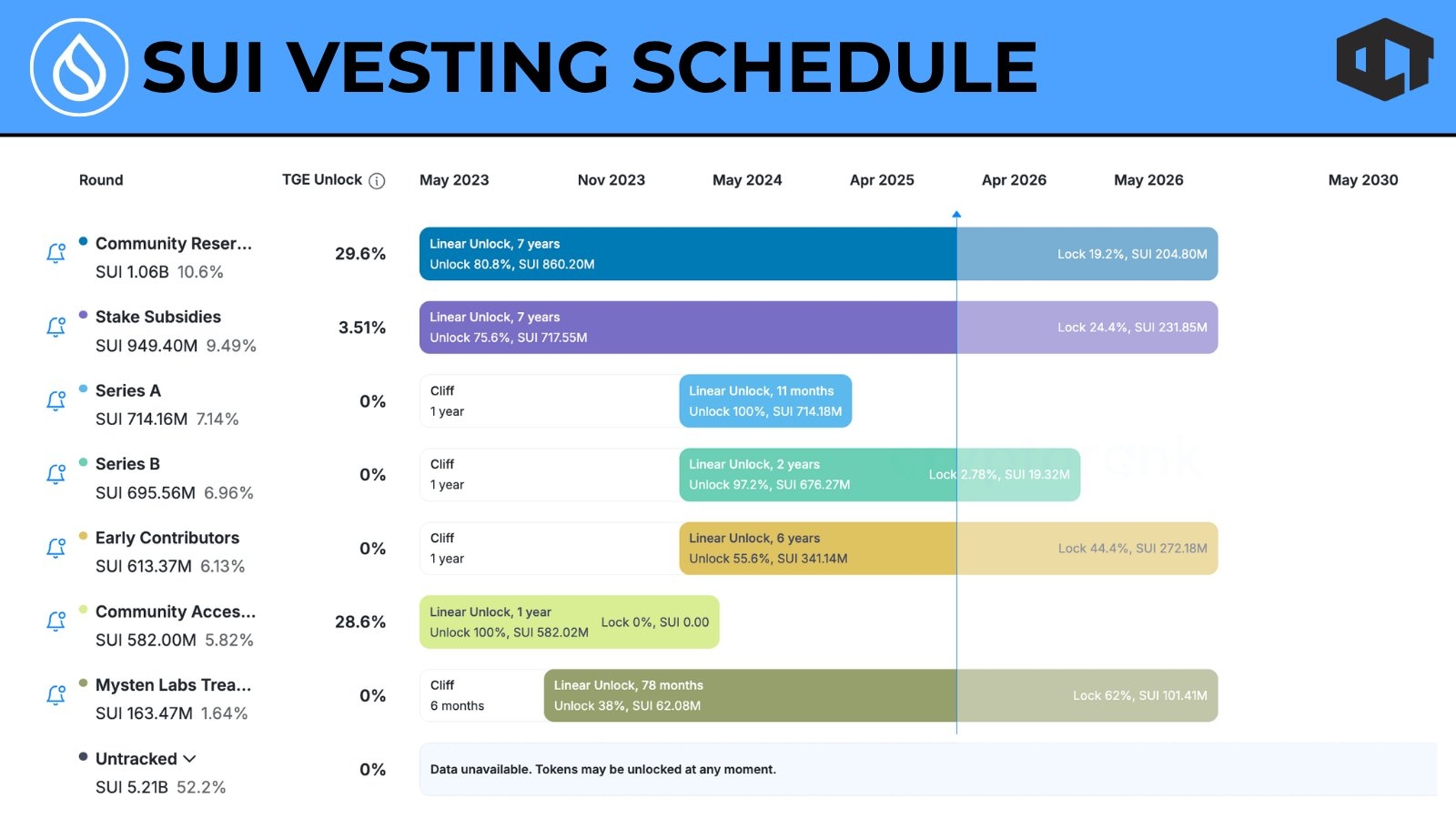 El 61% de todos los $SUI todavía está bloqueado y se está desbloqueando cada mes.