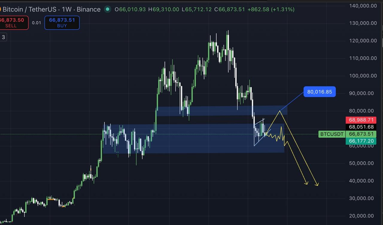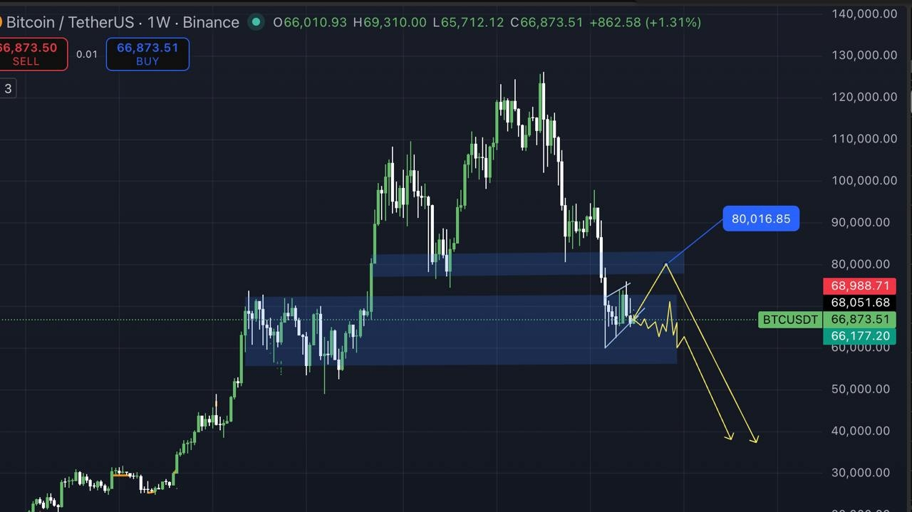 ➡️En el marco de tiempo más alto, especialmente en el gráfico semanal, la tendencia a largo plazo más amplia de $BTC se vuelve mucho más clara. La tendencia bajista general es evidente y ampliamente reconocida.