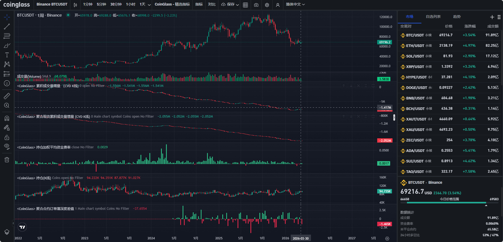 Lo más importante es que el ETF de Bitcoin al contado en EE. UU. continúa recibiendo flujos netos de capital, la entrada continua de fondos institucionales realmente está reestructurando la lógica de precios debido a la situación en Irán, convirtiéndose de un activo puramente especulativo en los últimos meses a una alternativa preferida reconocida por las instituciones que puede superar rápidamente las sanciones y evitar el problema de no poder llevarse el oro. Finalmente, hemos salido de este rápido pequeño mercado alcista. He visto que el volumen de transacciones de hoy se ha ampliado más de 1 vez.