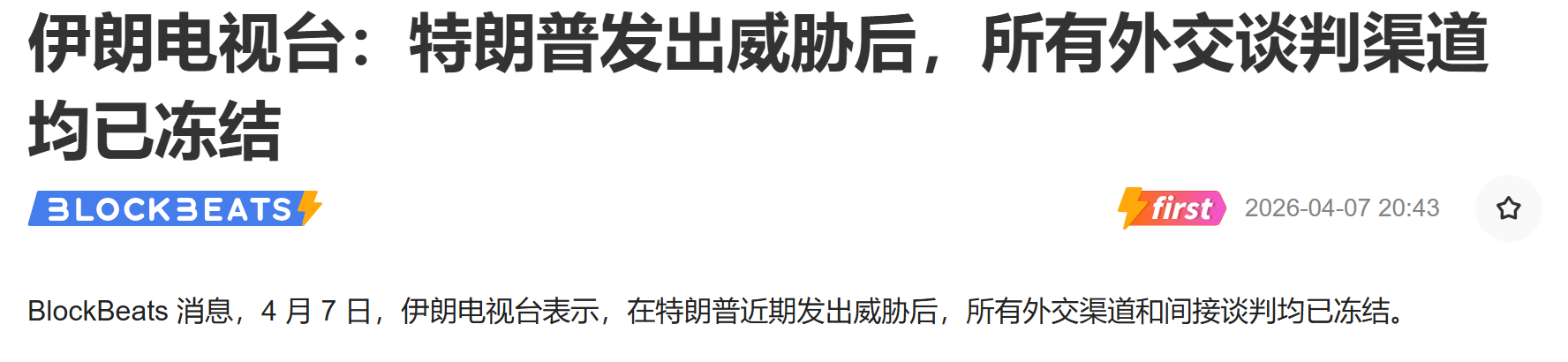随后,伊朗电视台回应——所有外交渠道和间接谈判,全部冻结。