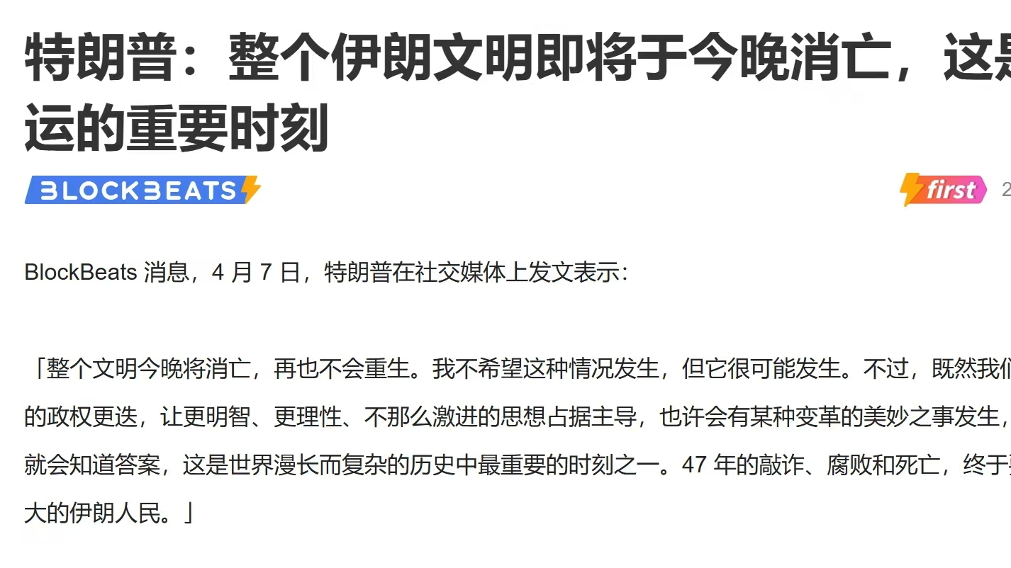 特朗普刚刚在社交媒体上说了句极其强硬的话: