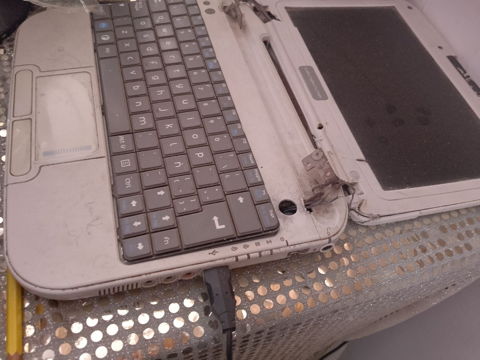 He adjuntado fotos de mi equipo roto. Estoy comprometida a trabajar y devolver cualquier apoyo a través de mis servicios profesionales hasta que pueda reparar/reemplazar mi equipo.