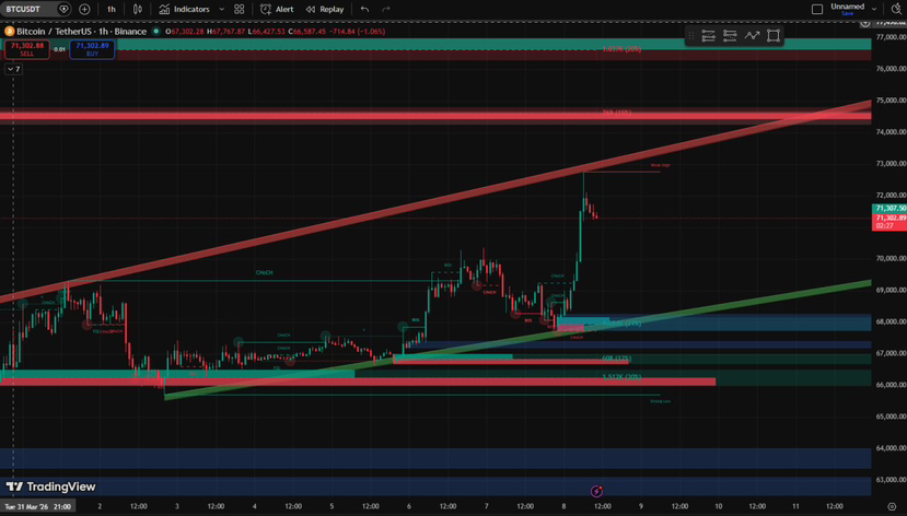 → Sell: 72,000 | SL: 73,000 | TP: 69,000
