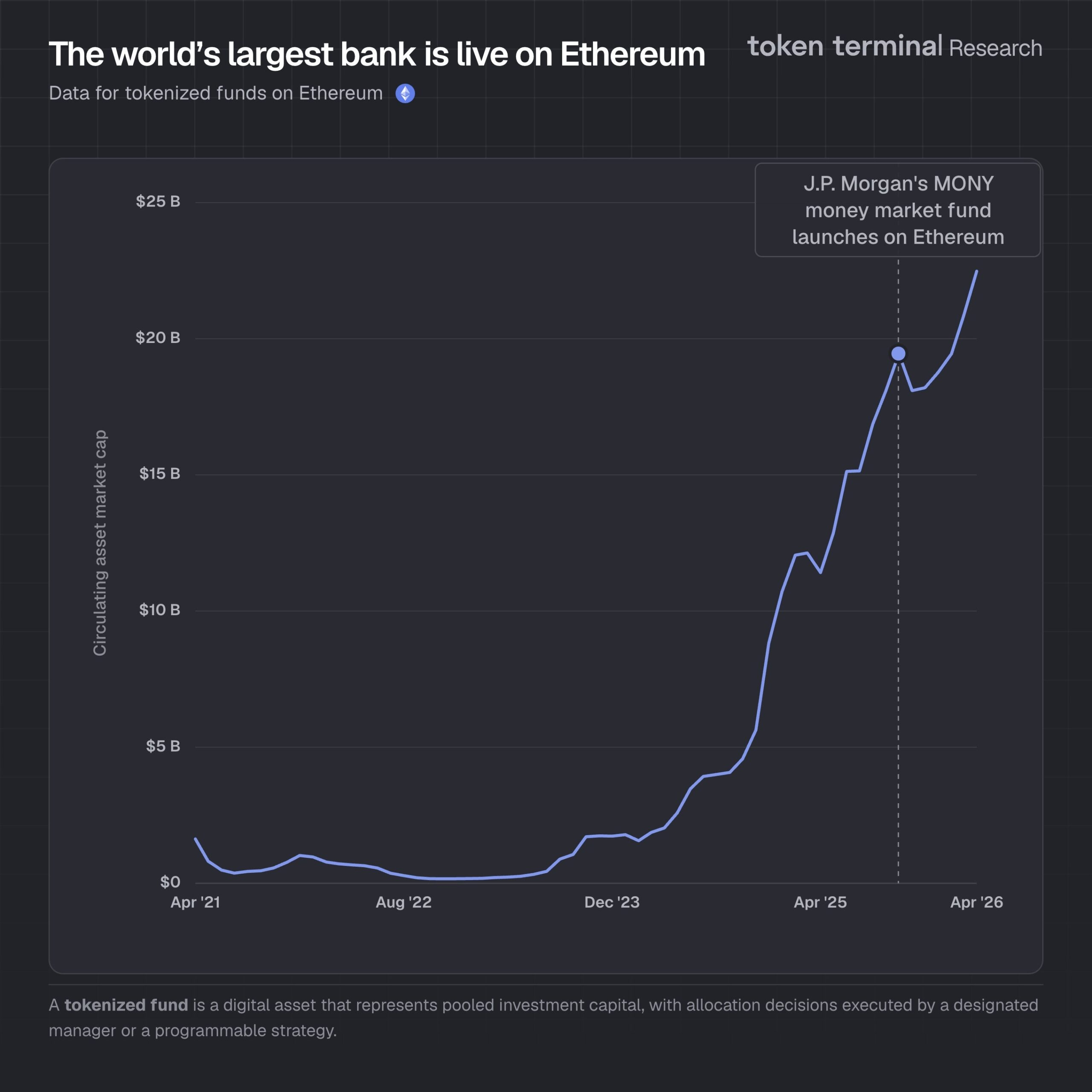 Además de las stablecoins, Ethereum también lidera en el ámbito de los fondos tokenizados. En la gestión de activos tokenizados a nivel mundial (AUM), el 71.9% se encuentra en la red de Ethereum. La participación de grandes instituciones también está aumentando gradualmente, por ejemplo, el fondo del mercado MONY de JP Morgan ya se ha lanzado en Ethereum, lo que mejora aún más la infraestructura y el reconocimiento del mercado de la red.