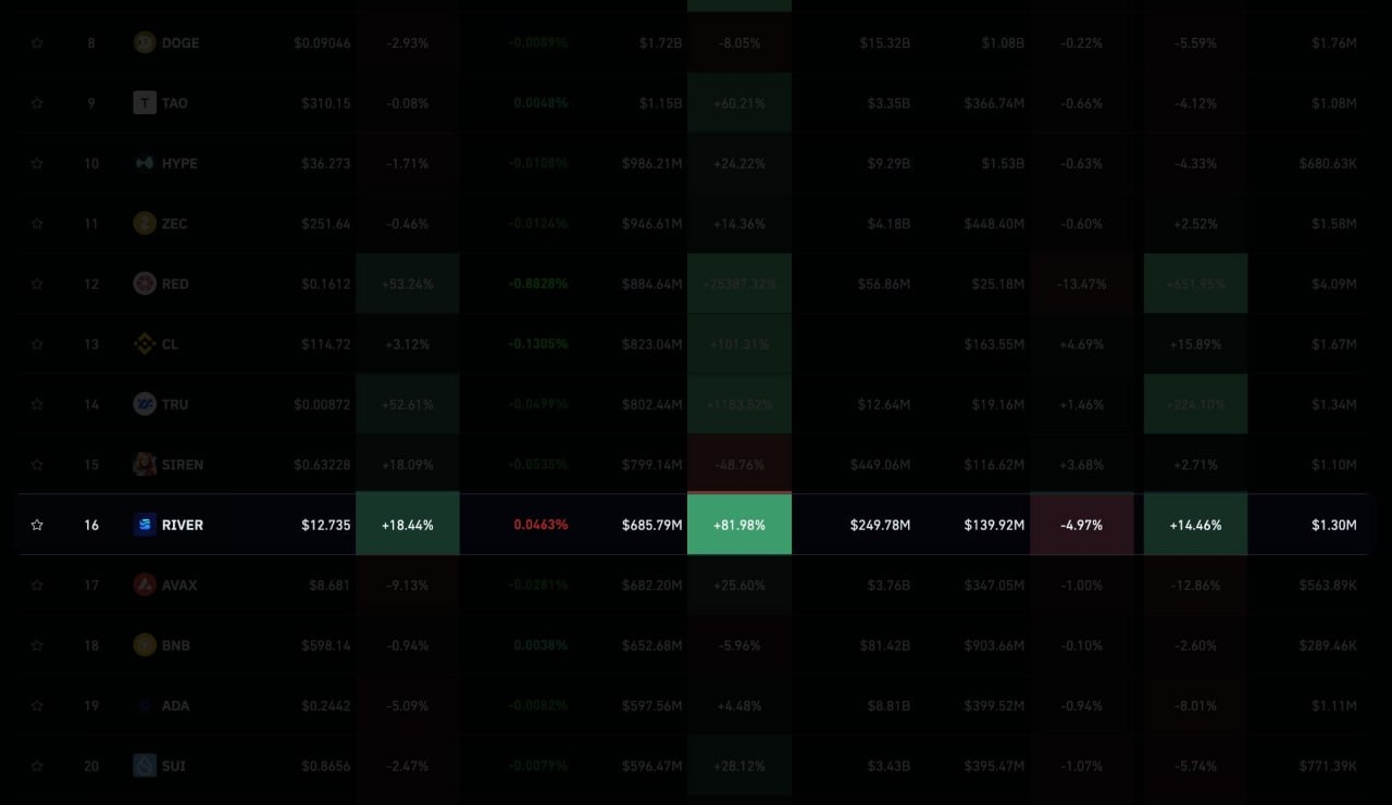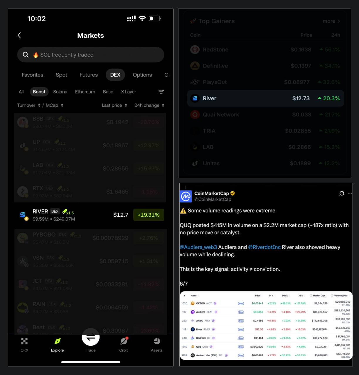 Las métricas de $RIVER en las últimas 24-48 horas confirman su fuerza: