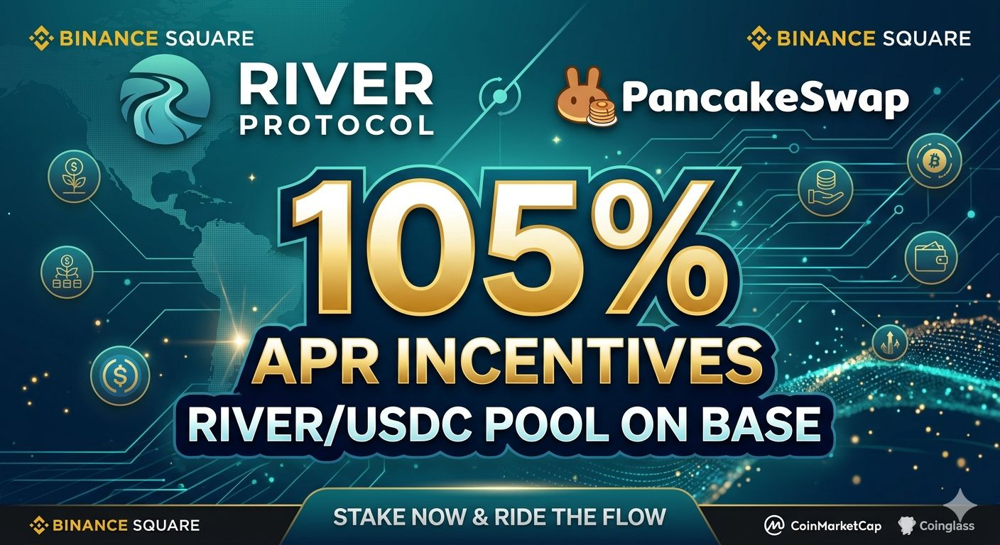 PancakeSwap (Base): Para los amantes del yield, el par RIVER/USDC en la red de Base está ofreciendo un 105% APR. ¡Incentivos masivos para quienes proveen liquidez!
