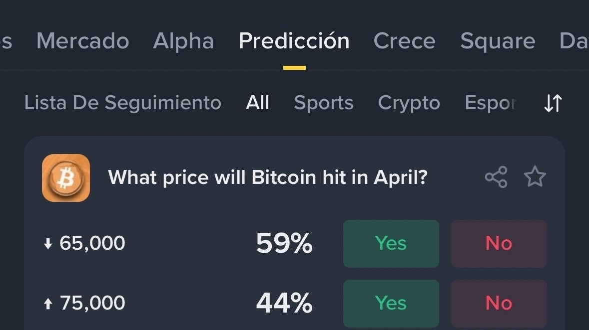 Binance, el mayor exchange de criptomonedas del mundo por volumen de comercio, habilitó hoy, 9 de abril, Prediction Markets (mercados de predicción, en castellano), una nueva función que permite a sus usuarios participar en apuestas directamente desde su aplicación.