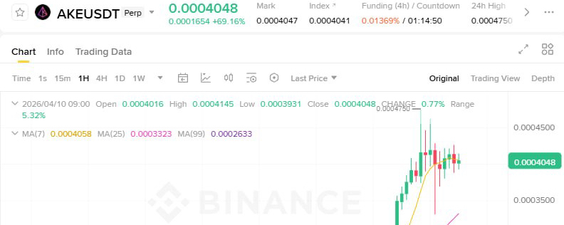 $AKE (AKEDO) сейчас торгуется на уровне 0.0004048 USD с впечатляющим ростом +69% за 24 часа. Это типичный памп низкокапового AI-проекта на Binance Alpha: платформа позволяет создавать полноценные игры через естественный язык с помощью AI-агентов, ускоряя разработку в 100 раз.