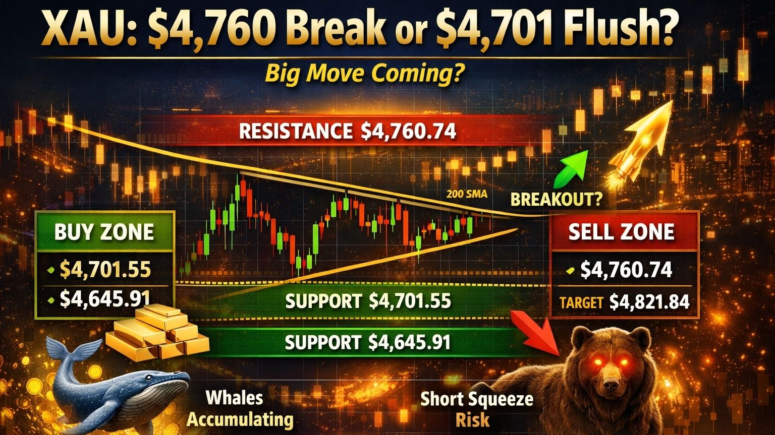 The bullish confirmation is clear. A clean break above $4,760.74 can open the road toward $4,821.84, and if volume expands with it, the squeeze could be sharp. On the other side, losing $4,701.55 would weaken the structure and expose $4,645.91 as the next major support.