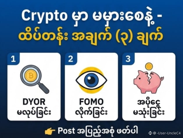 Crypto မှာ ရင်းနှီးမြှုပ်နှံတော့မယ်ဆိုရင် အမြတ်ထက် အရှုံးမရှိဖို့က ပိုအရေးကြီးပါတယ်။ အခုမှ စတင်မယ့် Beginner တွေအတွက် ကျွန်တော့်ရဲ့ အကြံပြုချက် (၃) ချက်ကို မျှဝေပေးချင်ပါတယ်။