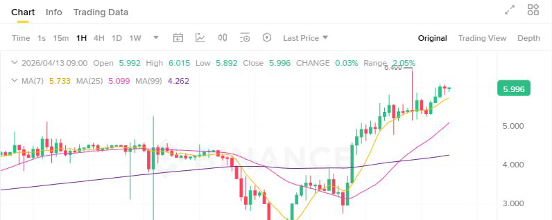 $TRADOOR сейчас торгуется на уровне 5.995 USDT с мощным ростом +81% за 24 часа. Объёмы торгов взлетели, интерес к альткоину огромный.