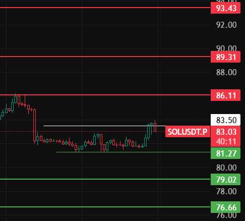 Si en la noche el nivel de 4 horas no cierra por encima de 83.5, el mercado continuará en un rango, luego bajará cerca de los niveles 81-79-76 para esperar órdenes largas. #solana