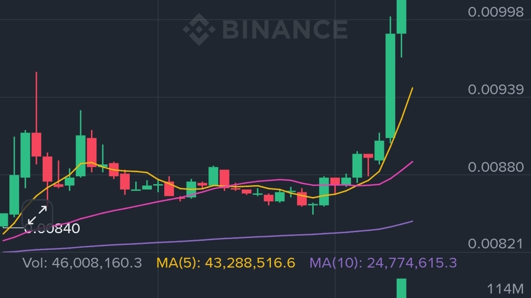 El precio acaba de hacer un fuerte movimiento impulsivo a 0.01102